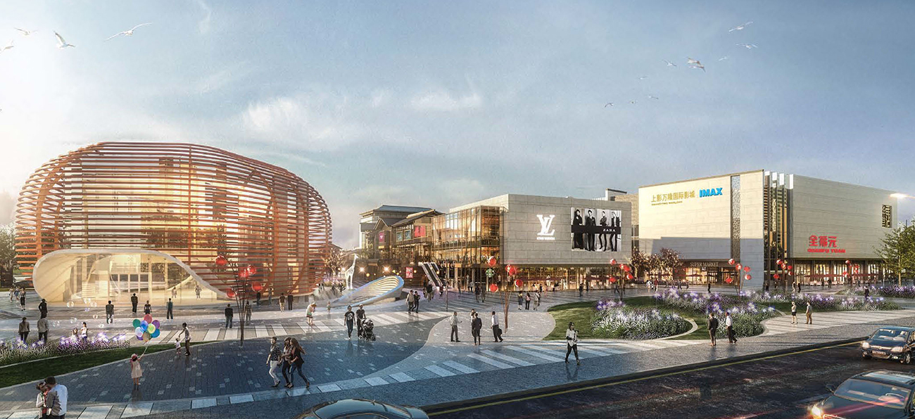 貫徹“以人為本”、“尊重自然”、建設(shè)生態(tài)型,適于現(xiàn)代生活的,又具有鮮明的個性化、人性化的商業(yè)空間。以新中式為建筑風(fēng)格;多元化的戶外空間,結(jié)合廣場和街道的尺度,形成宜人的商業(yè)氛圍。