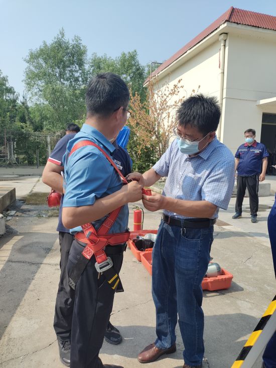 6月17日上午,逸涇水務(wù)公司在4#污水泵站參加市城鄉(xiāng)水務(wù)發(fā)展中心消防演練活動,本次演練特邀濱州市消防救援支隊二級消防士張寶寶和張政進行現(xiàn)場指導(dǎo)示范,對安全帶、救援三腳架、正壓式呼吸機、干粉滅火器等裝備器材的正確操作進行了詳細講解。