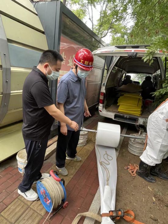 穆炳生董事長詳細聽取了項目負責(zé)人對排水管道紫外光固化法修復(fù)技術(shù)的介紹,對目前的施工情況給予了肯定,對烈日下一線工作人員表示了慰問。同時,也再次強調(diào)了施工任務(wù)的緊迫性,希望施工單位全力以赴,確保施工任務(wù)按期保質(zhì)保量完成。