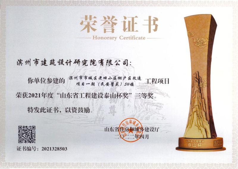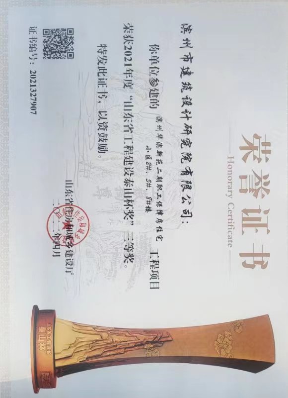 公司勘察設(shè)計的濱州醫(yī)學(xué)院附屬醫(yī)院門診醫(yī)技病房綜合樓項目榮獲國家優(yōu)質(zhì)工程獎;濱州華濱新苑二期職工保障房住宅小區(qū) 2#、5#、8#樓、濱州學(xué)院民用航空實驗實訓(xùn)樓三號樓、濱州市市城區(qū)老舊小區(qū)棚戶區(qū)改造項目一期(民安馨苑)5#樓獲山東省工程建設(shè)“泰山杯”獎三等獎;7人獲得山東省“土地杯”農(nóng)村新型住房建筑設(shè)計優(yōu)秀參賽作品獎;1人獲得2022年濱州市建筑設(shè)計BIM技術(shù)應(yīng)用技能競賽二等獎;1人獲得2022年濱州市建筑設(shè)計BIM技術(shù)應(yīng)用技能競賽三等獎;1人獲得2022年濱州市建筑創(chuàng)意設(shè)計技能競賽一等獎;2人獲得2022年濱州市建筑創(chuàng)意設(shè)計技能競賽二等獎;2人獲得2022年濱州市建筑創(chuàng)意設(shè)計技能競賽三等獎。
